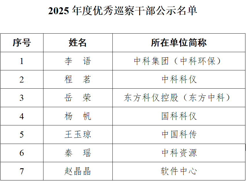 2025年,國(guó)科控股黨委巡察辦選調(diào)64名干部,組建了6個(gè)巡察組開(kāi)展巡察工作。國(guó)科控股黨委巡察工作領(lǐng)導(dǎo)小組根據(jù)各巡察組的工作成效和干部表現(xiàn),評(píng)選出年度優(yōu)秀巡察干部,現(xiàn)予以公示。